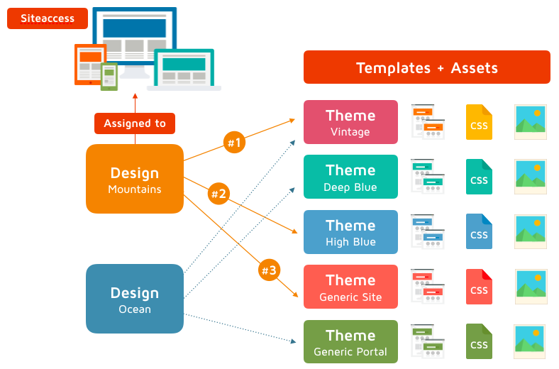 This is a new way to handle design, theming and design overrides, similar to what we had in eZ Publish. It enables you to define different Themes which are collections of assets and templates. You can then assemble Themes (that can override each other) to define Designs, and eventually, assign a Design to a SiteAccess. This is a powerful concept that we will aim to use in our out-of-the-box templates and demo sites. It comes especially handy when using eZ Platform for a multisite installation and willing to reuse design parts. Further info can be found in the Bundle documentation.
